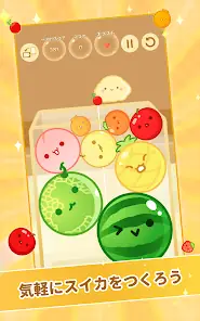 ● Game Overview As the fourth installment following the projector version, Nintendo Switch version, and iOS version of Aladdin X, this is the Android version of Watermelon Game. The rules are simple: combine two small fruits to grow larger, gradually creating a watermelon while striving for a high score without letting the fruits overflow from the box. When two fruits of the same type collide, they "evolve" into the next size. What happens when two watermelons collide?... Play and aim for a top ranking!